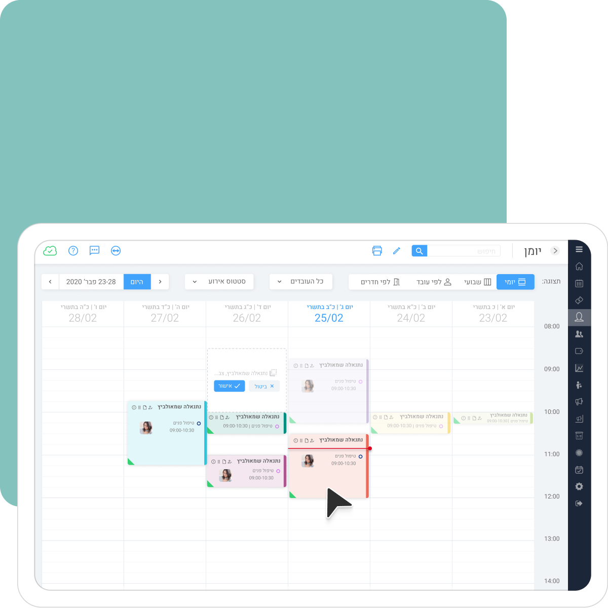 צריכים שהיומן יתחשב בזמינות של עובדים או בחדרים הפנויים במרפאה או בקליניקה? רוצים שכל עובד יוכל לצפות אך ורק ביומן שלו?